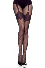 Su diseño fantasía crea la ilusión de un liguero que sujeta unas medias plumeti con remate de encaje.